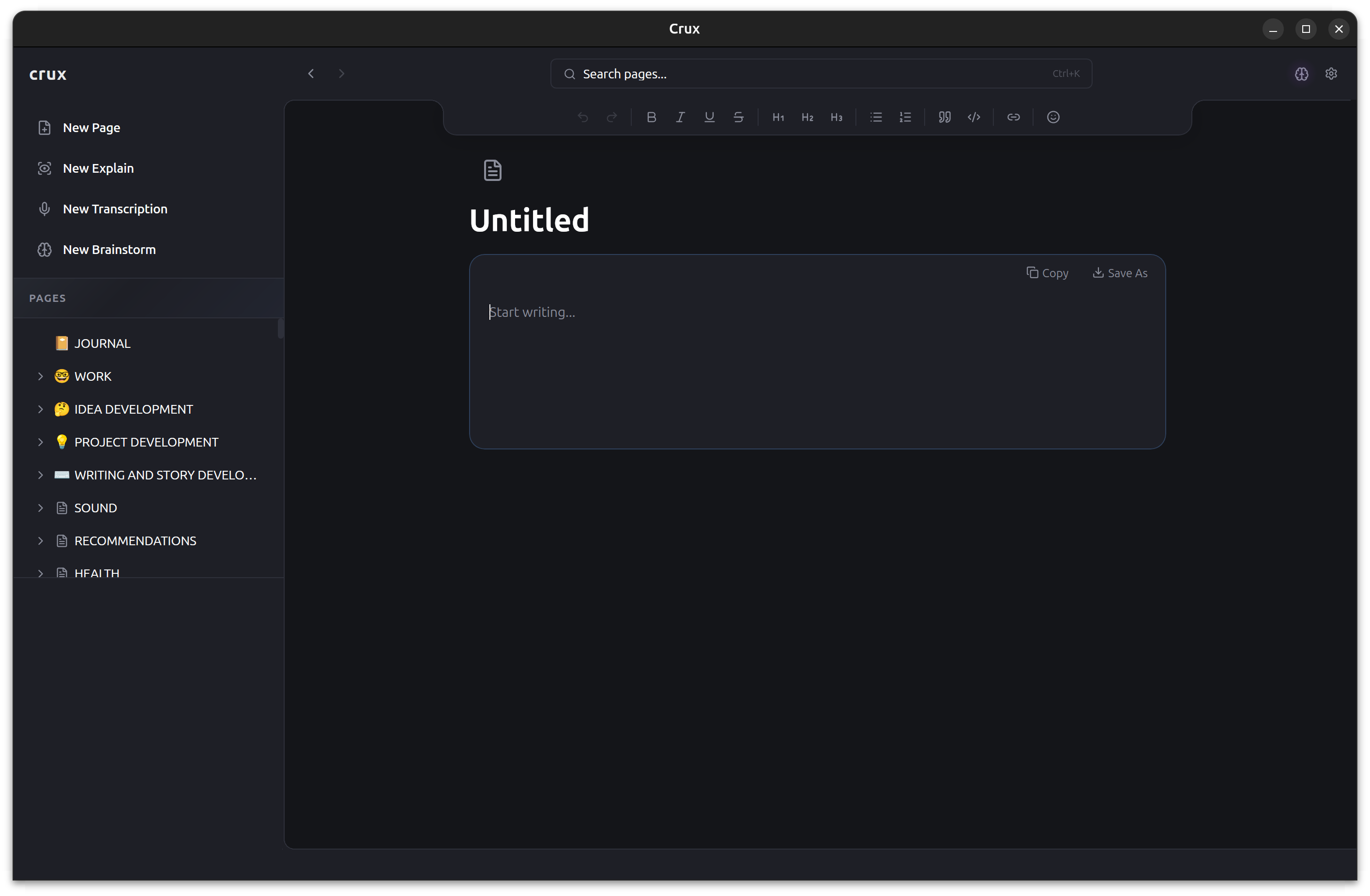 Your notes shouldn't live on someone else's server. Crux is a notes app with live audio transcription, AI-powered formatting, writing assistance, and summarization — all running entirely on your device. No cloud dependency. No account required. Nothing leaves your machine, ever. If privacy-first productivity tools matter to you, back Crux and help us build the notes app that actually respects your data. Read more…